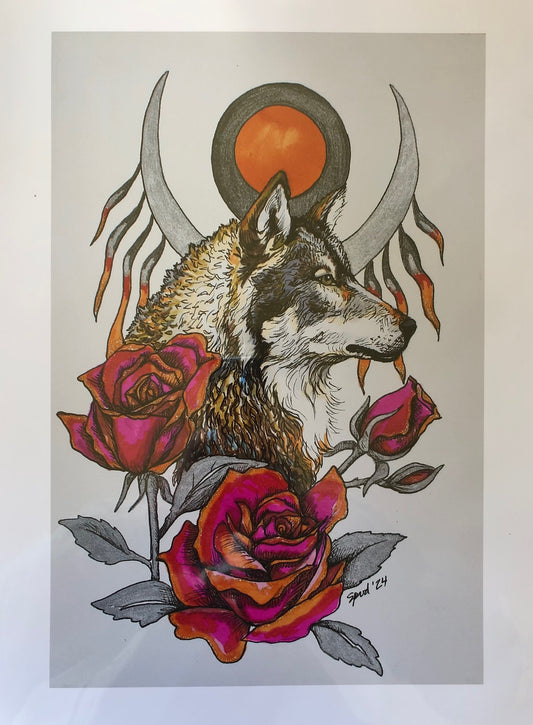 Wolf and Roses Giclee Print